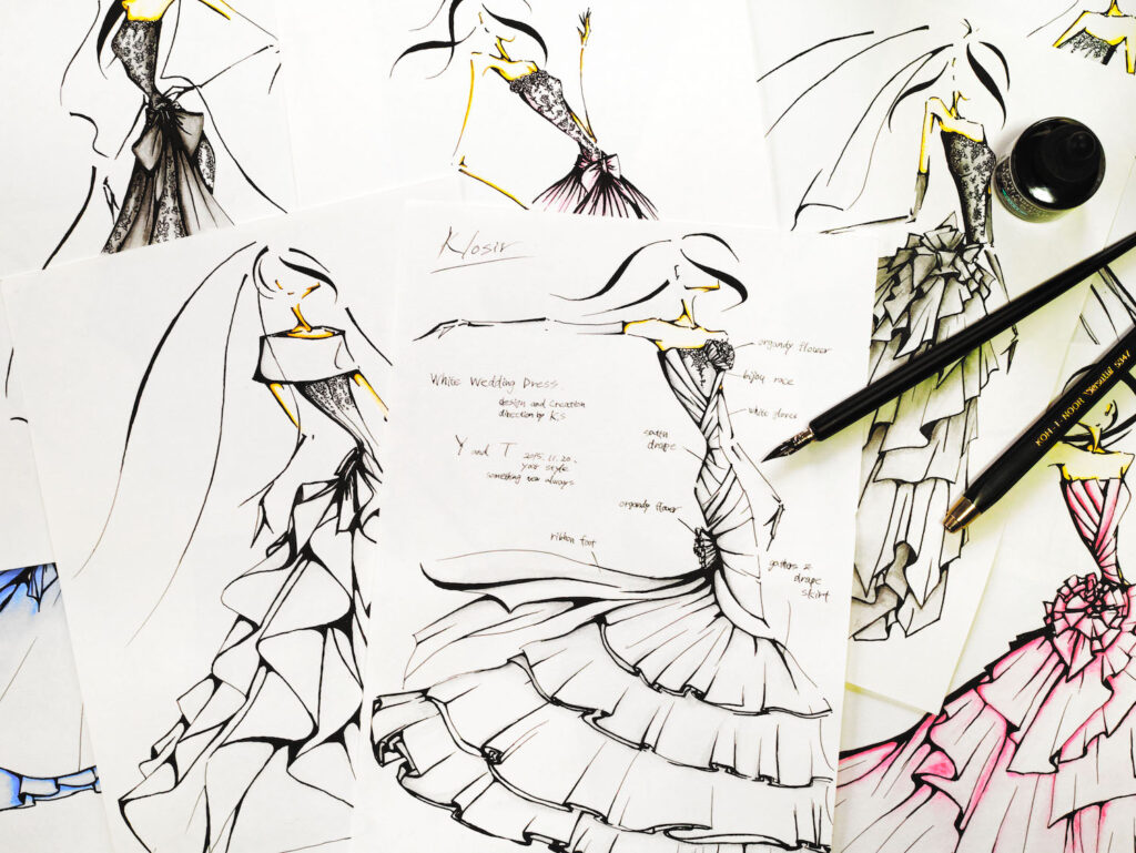 オートクチュール(完全オーダードレス)は、お客様一人ひとりのための独自性の高いオリジナルドレスです。そのため、既存のドレスのコピー品や、それに準ずるデザインの制作は一切お受けしておりません。