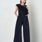 Flared Shoulder Jacquard Pants Dress has received 0 reviews with an average rating of out of 5