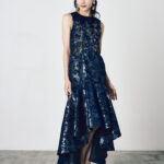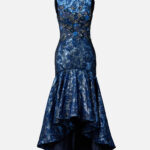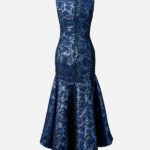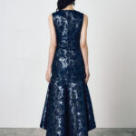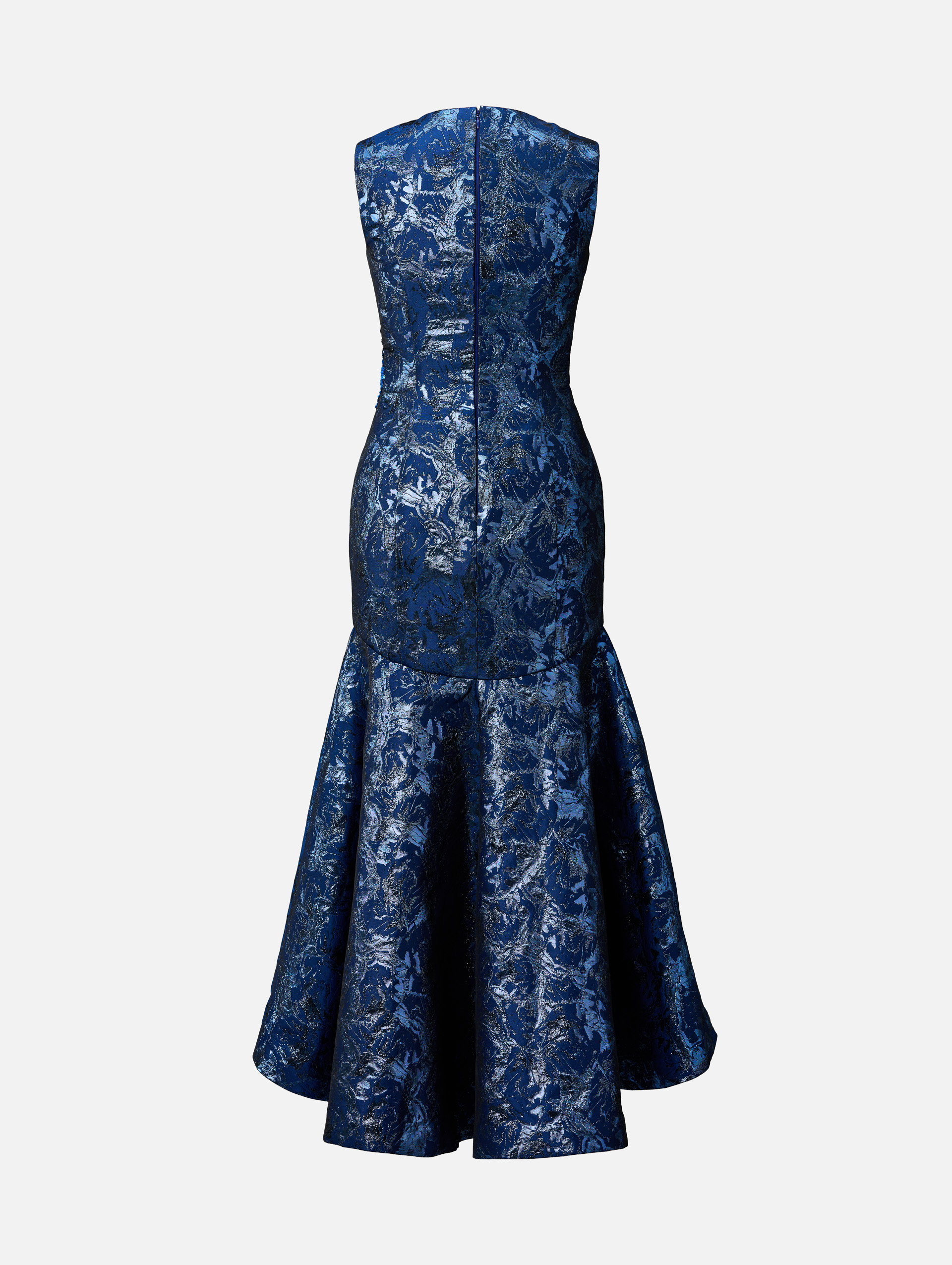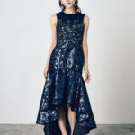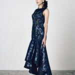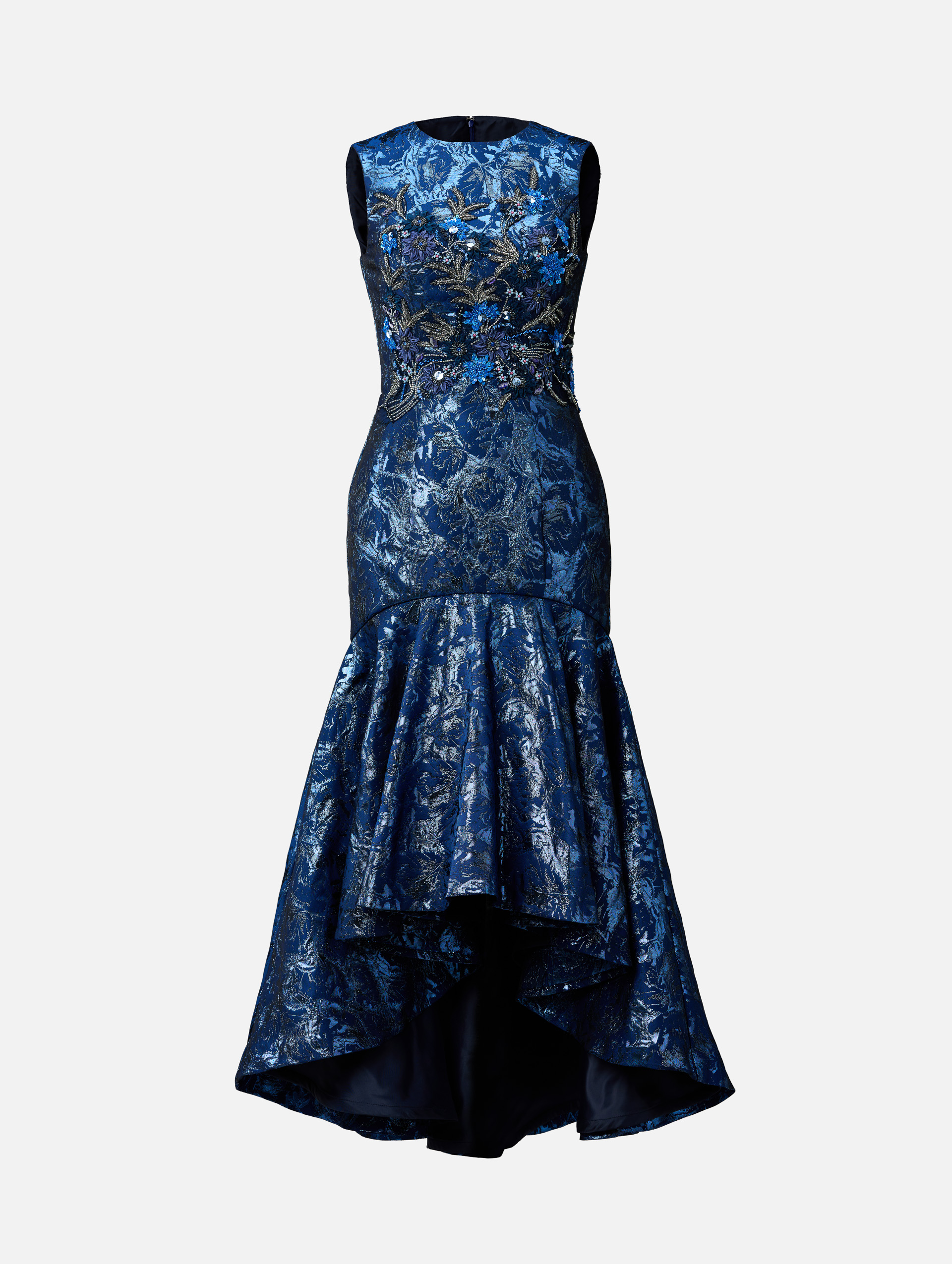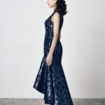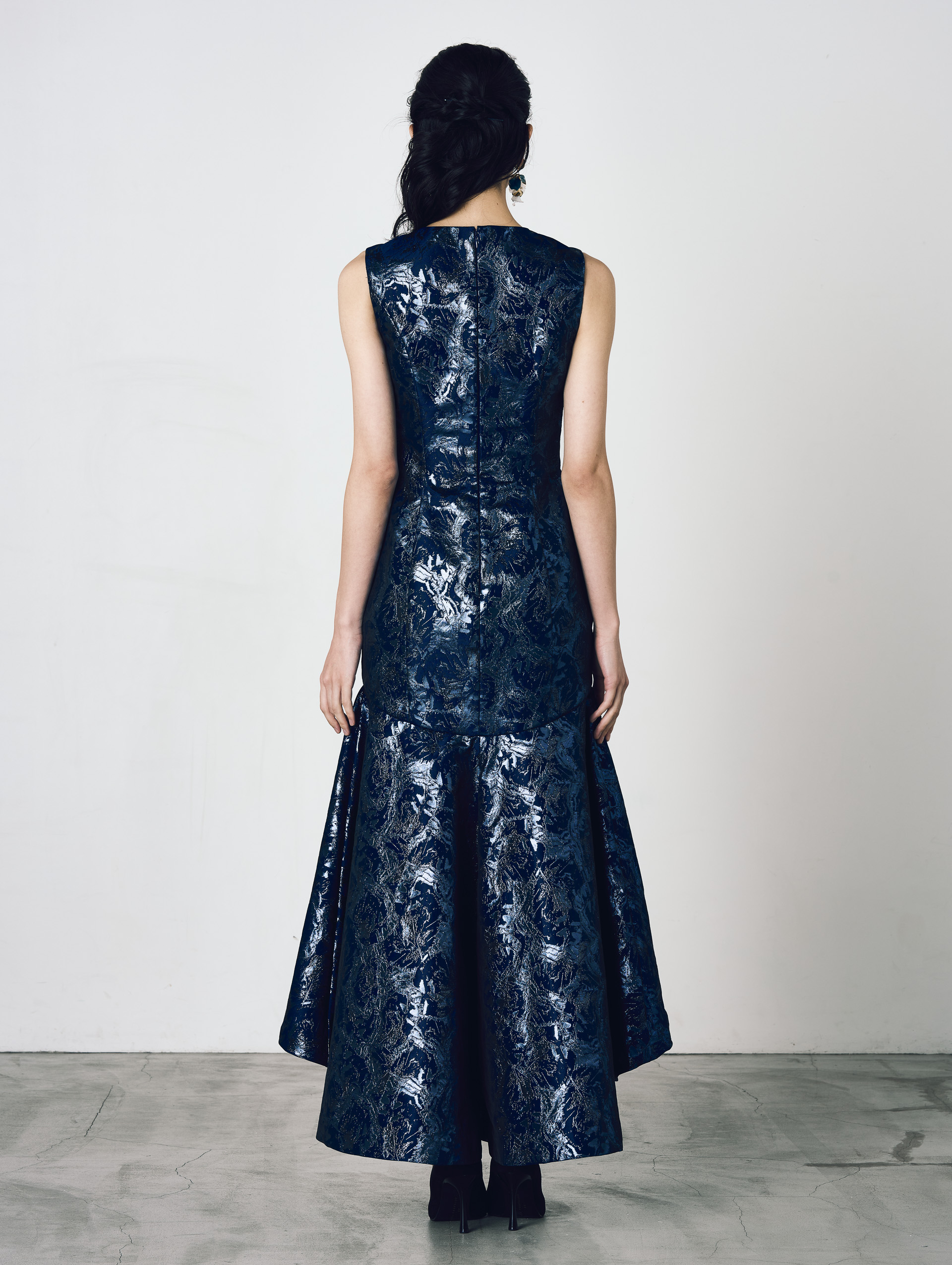 最高級のイタリアンジャガードとビジューレースを使用した贅沢なドレス。丈の長さはフルレングスを指示可能